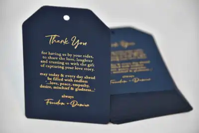 Embossed printing raises elements of your design above the paper surface, while debossed printing presses them into the stock. These subtle but effective finishes add texture and sophistication without additional ink.